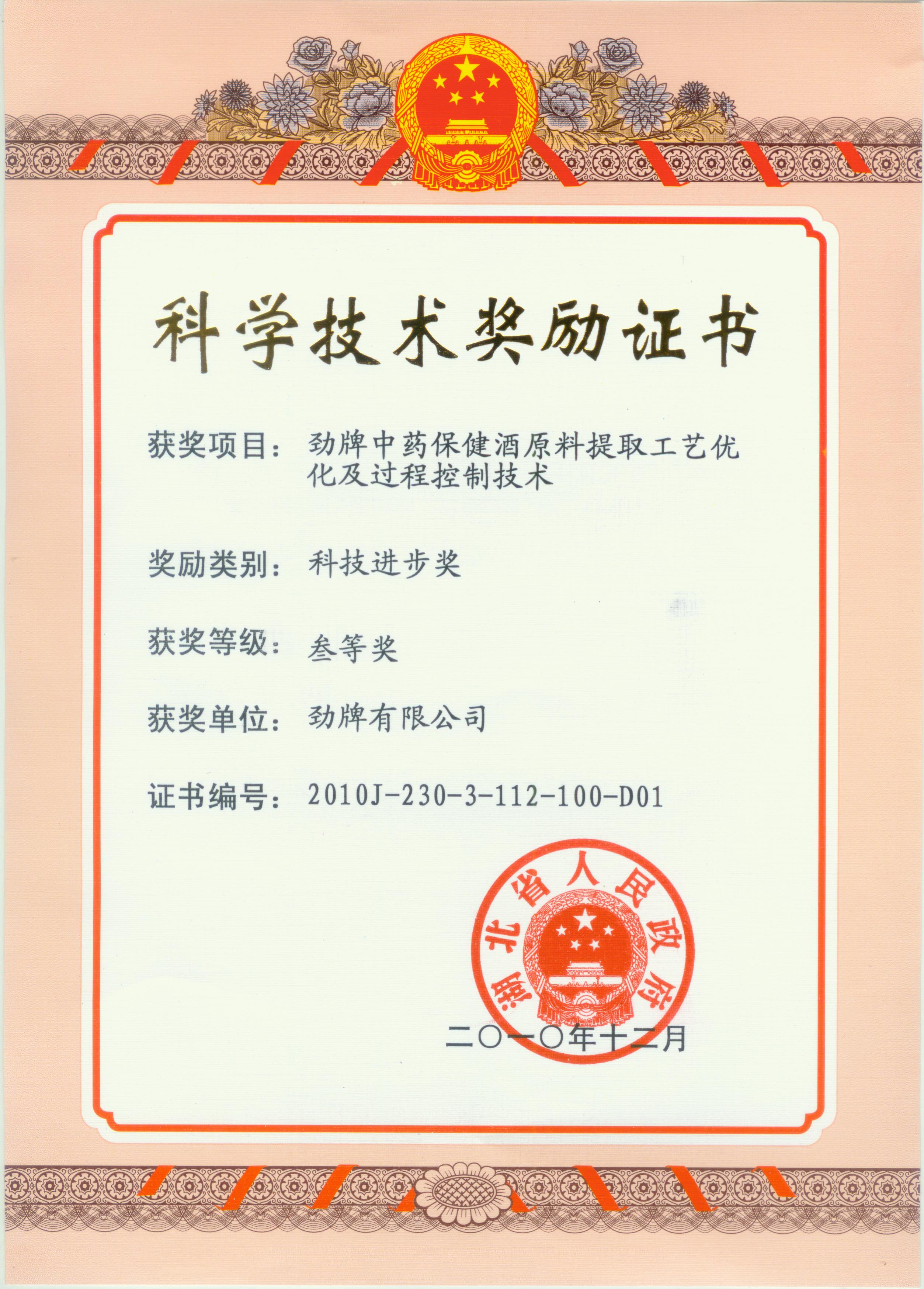 勁牌中藥保健酒原料提取工藝優(yōu)化及過(guò)程控制技術(shù)