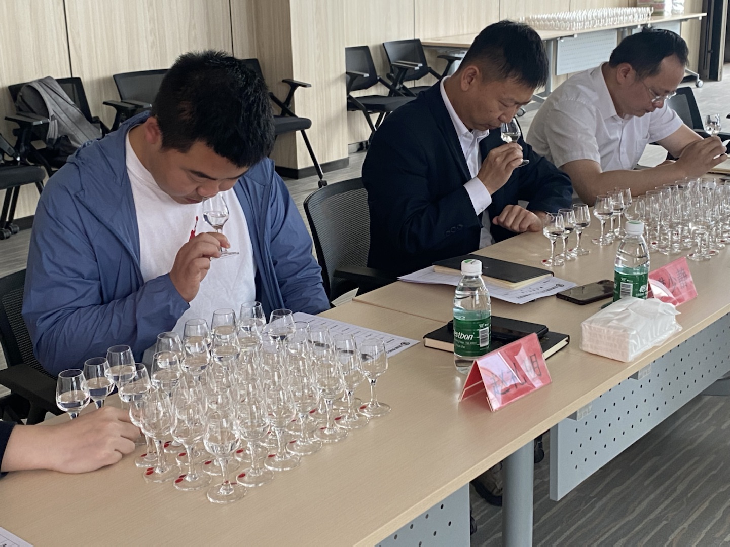 5月11日,專家組在繡林玉液酒業(yè)分別對楓林酒廠、繡林玉液、雋州篁及西藏的酒樣進行了逐一品鑒。 5月17日,專家組在對宜賓南溪酒業(yè)公司濃香型原酒進行了品鑒。 5月23日,專家彭茵團隊在茅臺鎮(zhèn)對公司神農架酒業(yè)、國寶酒業(yè)和茅臺鎮(zhèn)酒業(yè)的醬香型原酒進行了品鑒。 5月24日,健康白酒技術部及外部專家在天龍泉酒業(yè)對其米香型白酒進行了品鑒。 原酒做為酒產品的基礎,其品質好壞直接影響著我們產品和消費者的感受。近年來,為提升公司原酒品質,公司及各外部酒業(yè)均開展了長期、持續(xù)的攻堅。本次專家品鑒工作的開展,旨在通過品評指導生產,促進原酒品質和釀造水平的持續(xù)提升。
