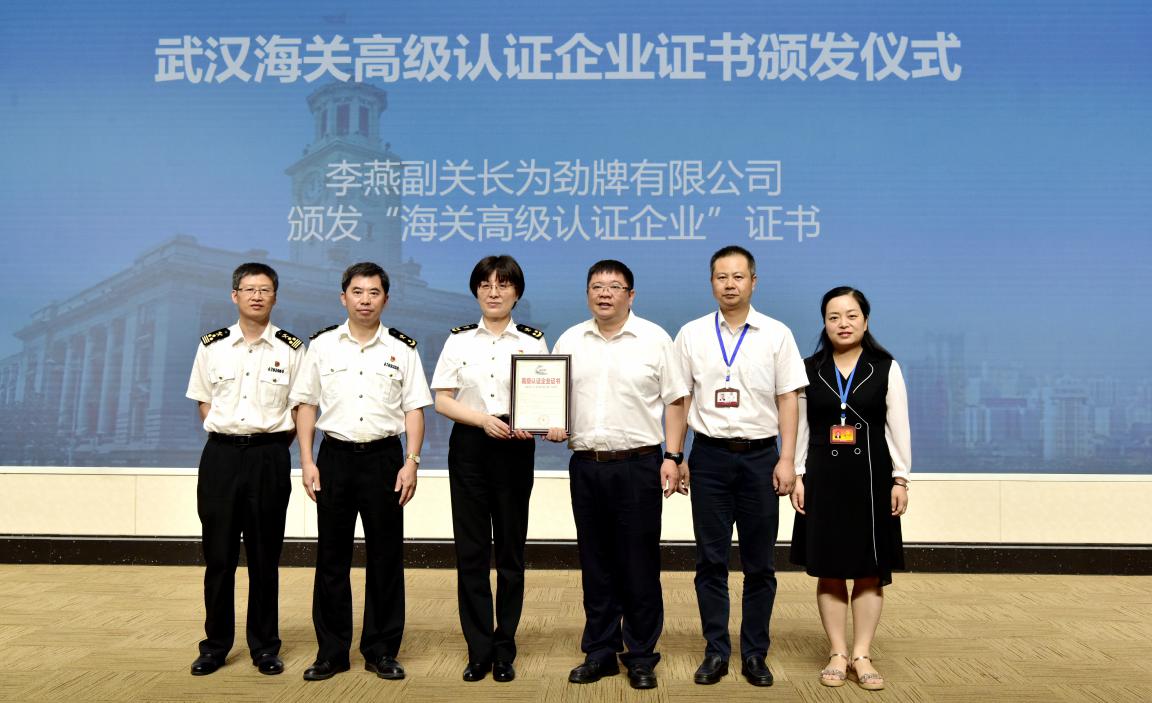 9月2日,武漢海關(guān)副關(guān)長李燕在黃石海關(guān)關(guān)長馬洪波等領(lǐng)導(dǎo)的陪同下,蒞臨勁牌調(diào)研指導(dǎo)工作,并為公司頒發(fā)“海關(guān)高級認(rèn)證企業(yè)”證書。勁牌公司總裁王楠波、副總裁李暉予以了熱情接待。