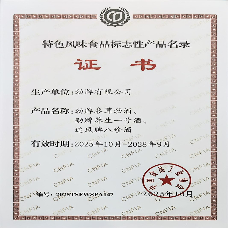 近日,經(jīng)中國(guó)食品工業(yè)協(xié)會(huì)組織專家嚴(yán)格評(píng)審,勁牌有限公司旗下“參茸勁酒、養(yǎng)生一號(hào)、追風(fēng)八珍酒”三款產(chǎn)品...
